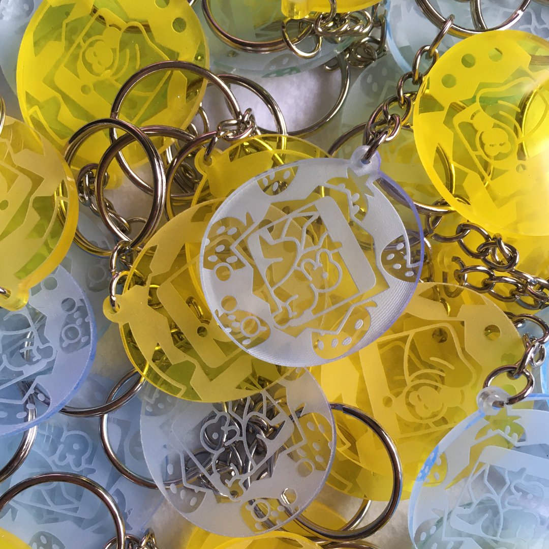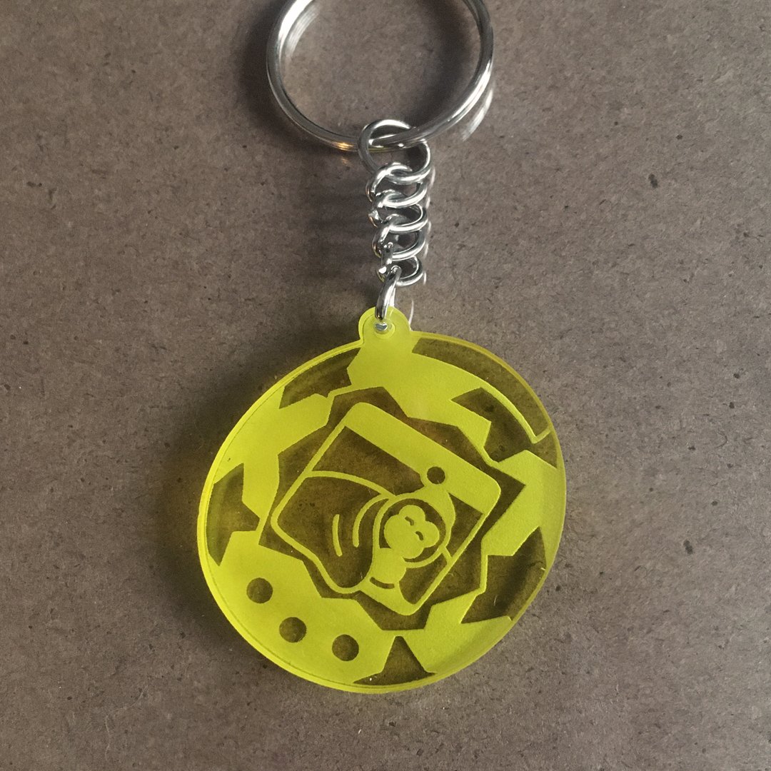 Porte-clés en acrylique avec gravure laser, recto verso. Environ 4x4xm